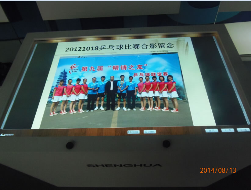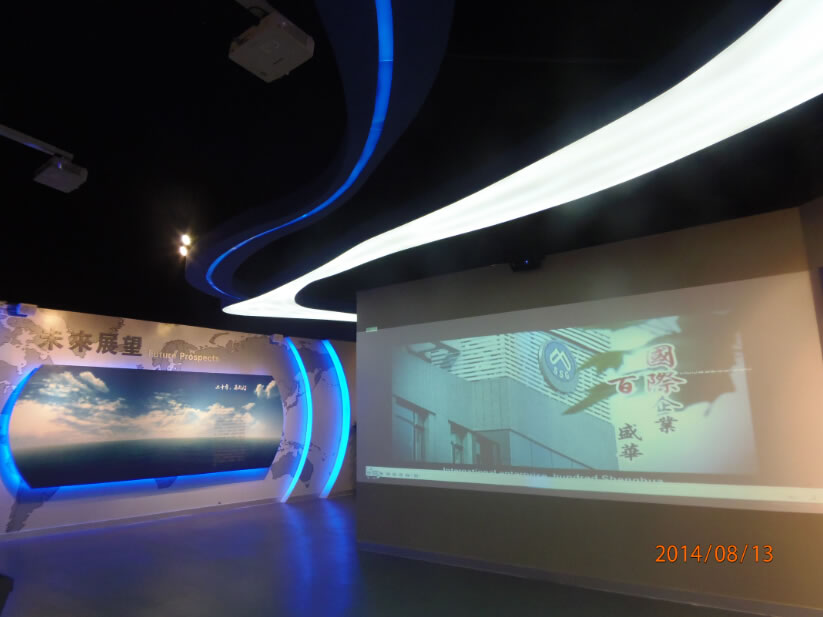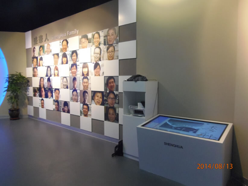 石家莊盛華企業(yè)集團(tuán)企業(yè)展廳聲光電系統(tǒng):領(lǐng)導(dǎo)關(guān)懷55寸液晶觸摸屏一體機(jī)、電子簽到、拍照留念、虛擬翻書、投影機(jī)互動(dòng)、投影機(jī)融合、講解音響、展廳背景音樂等。