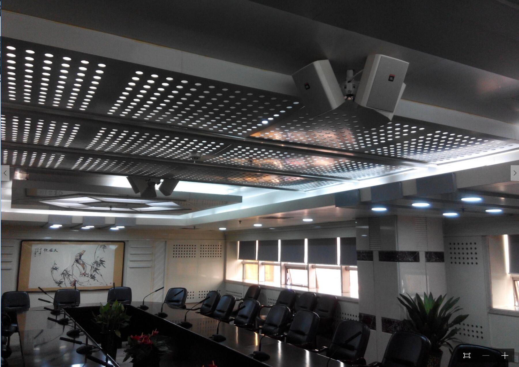 次會議室擴(kuò)聲系統(tǒng)采用6只 JBL CONTROL 928會議音響,JBL CONTROL 928的安裝采用InvisiBall隱球安裝固件能大大減少安裝所需時(shí)間。InvisiBall隱球安裝固件能在垂直偏軸調(diào)整37度,水平偏軸調(diào)整44度。由于InvisiBall隱球可調(diào)固件是隱蔽在LOGO標(biāo)牌后面,所以無需卸下格板,這樣還能防盜。構(gòu)成:8英寸聚丙烯涂層低音單元,1英寸鈦涂層帶號筒的高音單元。內(nèi)置InvisiBall ®隱球安裝硬件,全天候設(shè)計(jì),有黑色(928)和白色(928-WH)可選、90° x 90° 高音號筒、具備過載保護(hù)功能的電路,是會議首選擴(kuò)聲音箱。